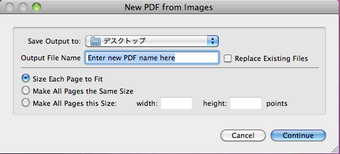 ImagesToPDFでは、操作画面の左側に画像の選択先フォルダが表示されます。フォルダ内の画像プレビューが画面の中央に表示されるので、PDF化したい画像を右下のChooseボタンで選択し、PDFのファイル名と保存先を設定後にContinueを押すとPDFが作成されます。画像形式はJPEG、PNG、TIFFに対応しており、shiftキーで複数の画像を選択して1つのPDFにまとめることもできます。また、PDF化した画像に文字を書き加えることもできます。